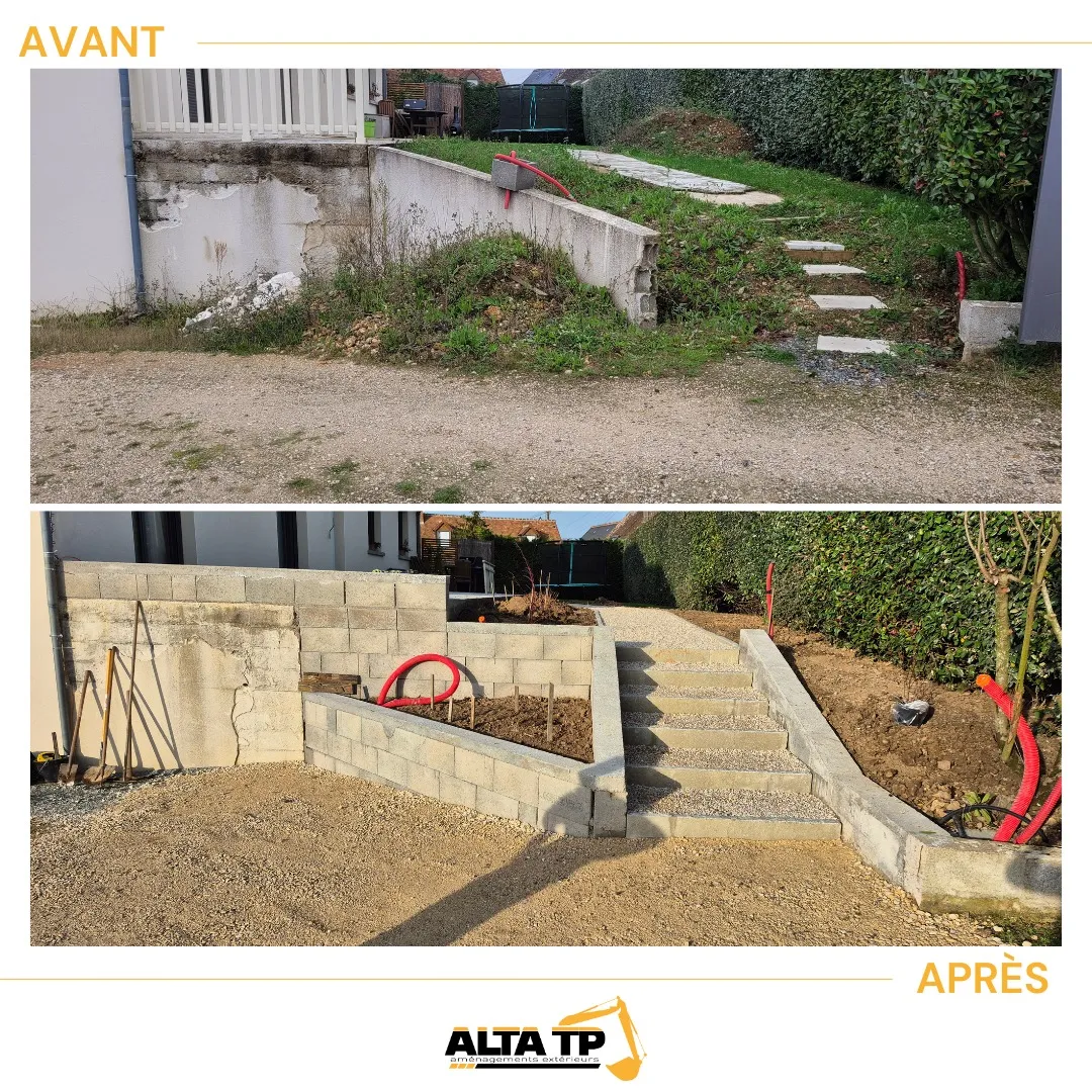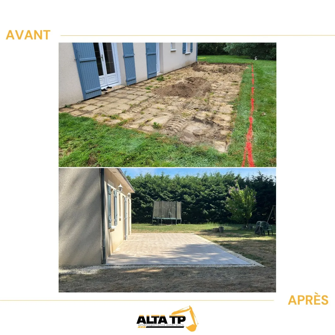 EXCELLENT Basée sur 8 avis Publié sur Aurore GUIETTrustindex vérifie que la source originale de l'avis est Google. C'est un second avis que je laisse en tant que cliente. J'ai fait appel à Alta Tp pour la seconde fois et le résultat est toujours impeccable. (Premier chantier terrassement de devant de maison avec gravillonnage et décoration) Ce second chantier était de réaliser 21 mètres de clôture chez des locataires avec des plaques de soubassement. Ce que j'apprécie particulièrement, c'est l'accompagnement de A à Z : le devis est transparent (a été revu à la baisse après négociation avec les fournisseurs- d'autres terrassiers n'auraient pas fait ce gestes sans demande du client) , les délais sont respectés et le chantier est laissé propre. Point de fin de chantier fait avec les deux gérants, un sérieux toujours appréciable. Les locataires ont confirmé une discrétion et propreté d'Alta TP ainsi qu'une superbe qualité des matériaux posés ! C'est rare de trouver un terrassier aussi rigoureux et professionnel. Il ne faut retenir que ces mots : " travail soigné, écoute, professionnalisme du devis à la livraison" Un grand merci pour ce superbe travail ! AurorePublié sur Graziella PrieurTrustindex vérifie que la source originale de l'avis est Google. Chantier très technique d'un talus qui s'effondrait... merci pour votre professionnalisme !Publié sur Baudouin BarbetteTrustindex vérifie que la source originale de l'avis est Google. Des professionnels rares, à l’écoute et force de propositions, disponibles et réactifs. Leur expérience sur ce type de projet est évidente. Projet majeur, étalé sur plusieurs semaines : une allée carrossable/de stationnement en enrobé, une vaste allée gravillonnée et une terrasse spacieuse, toutes parfaitement réalisées selon nos attentes. Malgré les imprévus liés à la rénovation (découverte de gaines, cables, tuyau d’évacuation non identifié,le tout sur terrain accidenté…), les solutions proposées étaient multiples et parfaitement adaptées, permettant un chantier mené en totale confiance. Je recommande vivement cette société pour ce type de projets.Publié sur Bertrand PTrustindex vérifie que la source originale de l'avis est Google. satisfait _travail fait avec gout _ bon rapport qualité -prix pas déçu du résultatPublié sur Bruno SAULAYTrustindex vérifie que la source originale de l'avis est Google. J'ai récemment fait appel à une équipe d'entrepreneurs pour des travaux de terrassement, et je suis satisfait du résultat. Les travaux ont été réalisés dans d'excellentes conditions, avec une grande attention aux détails. Les entrepreneurs se sont montrés ponctuels et pragmatiques, ce qui a grandement facilité le processus. Je recommande vivement leurs services à quiconque cherche un travail de qualité.Publié sur Marie Sophie FarrandoTrustindex vérifie que la source originale de l'avis est Google. Une équipe au top ! Professionnalisme, sérieux et efficacité sont au rendez-vous. Les travaux ont été réalisés avec soin et dans les délais annoncés. L’équipe est impliquée, à l’écoute et toujours prête à trouver des solutions adaptées. C’est rare de voir autant de rigueur et de savoir-faire. Je recommande sans hésitation !Publié sur Ben CheronTrustindex vérifie que la source originale de l'avis est Google. Super équipe, très bons conseils, réalisation soignée et rapide. Je recommande chaudement ALTA tp, confiance totale pour la conduite des travaux. On est super content du résultat, merci.